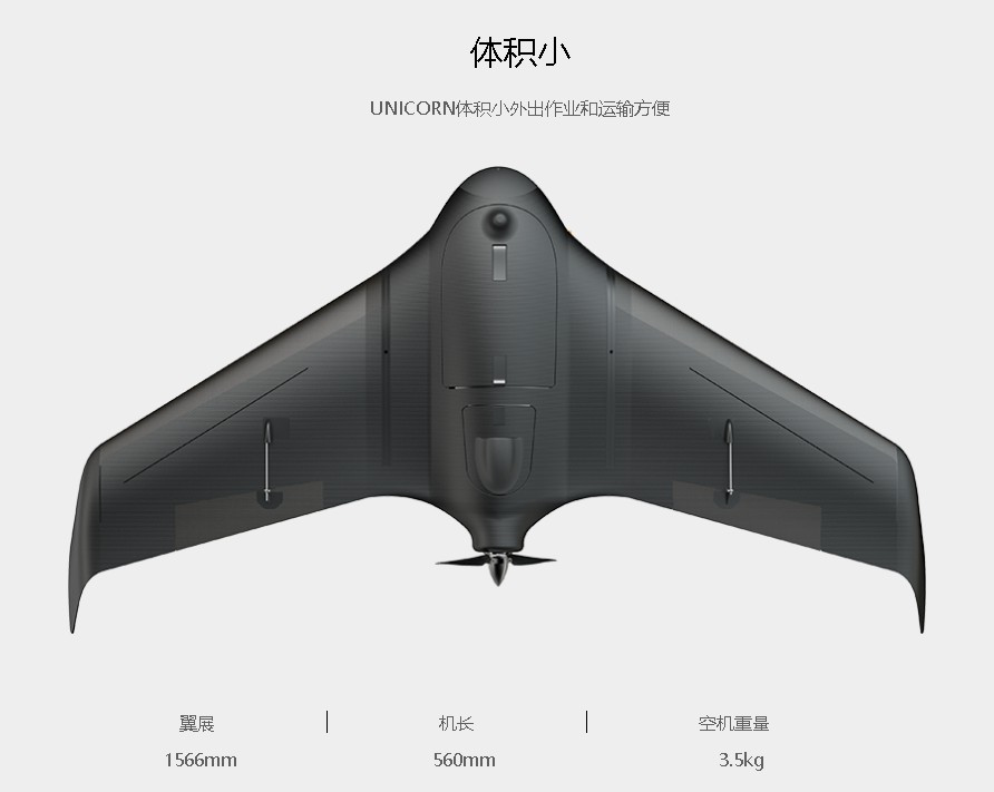 最新的无人机产品UNICORN上线了,主打易用、安全、高精度的性能。三角翼的结构设计,让该款无人机在使用中有着良好的飞行体验,并在检测、监察、信息采集等领域广泛使用。