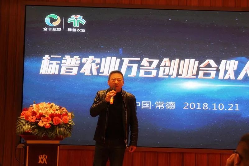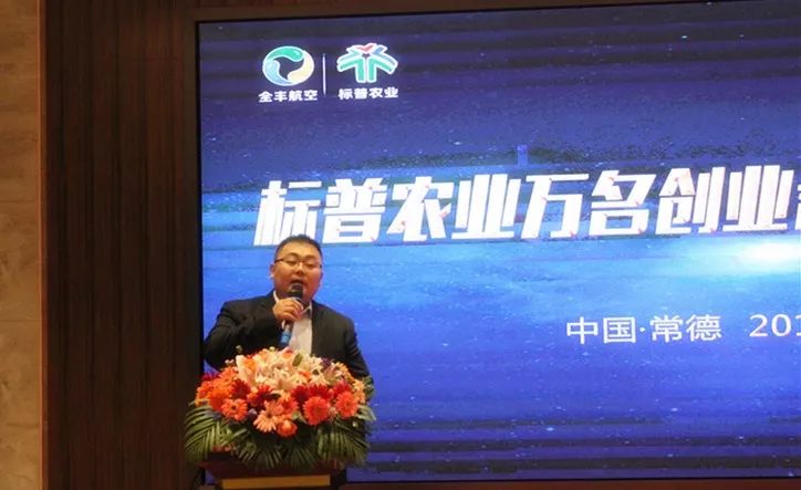 标普农业总经理张晓林致欢迎词,张总讲到,面对万亿的农服市场,标普之愿景,就是携手各位,共创标普伟业,将标普之大旗,遍插三湘大地!