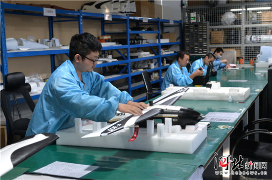 10月22日,河北飞图科技有限公司员工在位于香河的硬件研发生产基地组装无人机,该公司生产的无人机远销柬埔寨、安哥拉和巴基斯坦等地。