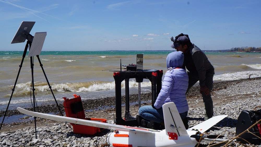 固定翼测绘无人机一般只能在陆上降落,若用家需要在海洋上进行测绘,只能选择在船上甲板降落。无人机制造商Aeromao Inc 打破了传统,制作出主要用以作海洋、湖泊、海岸线拍摄的防水无人机Talon Amphibious ,其由碳纤维增强EPO (发泡聚烯烃)制成,可从岸上或船上起飞,完成任务后不单能以降落伞方式在陆地或者甲板上着陆,最大场卖点是能降落并飘浮在水面而不损零件,为用家提供多一个降落地点选择。