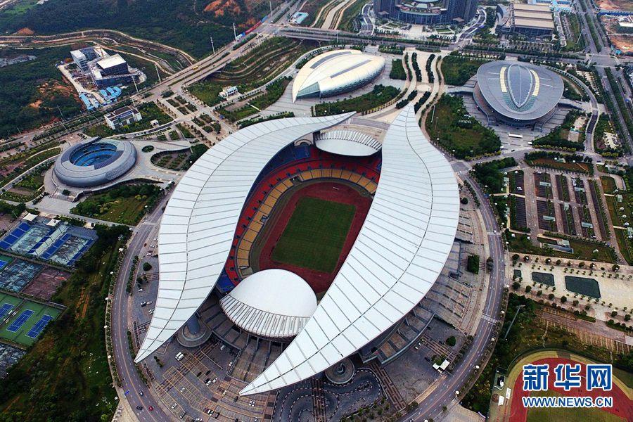 图为无人机航拍的体育中心比赛场馆(摄于2018年10月22日)。新华网 章佳礼摄