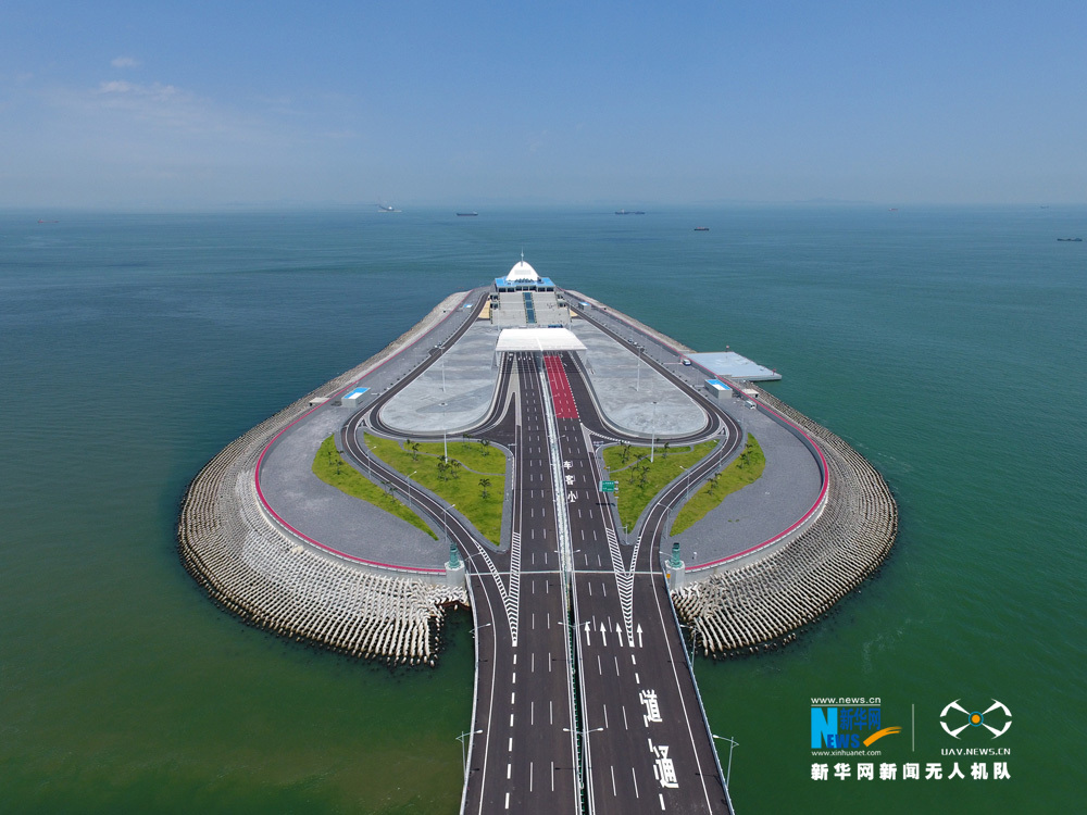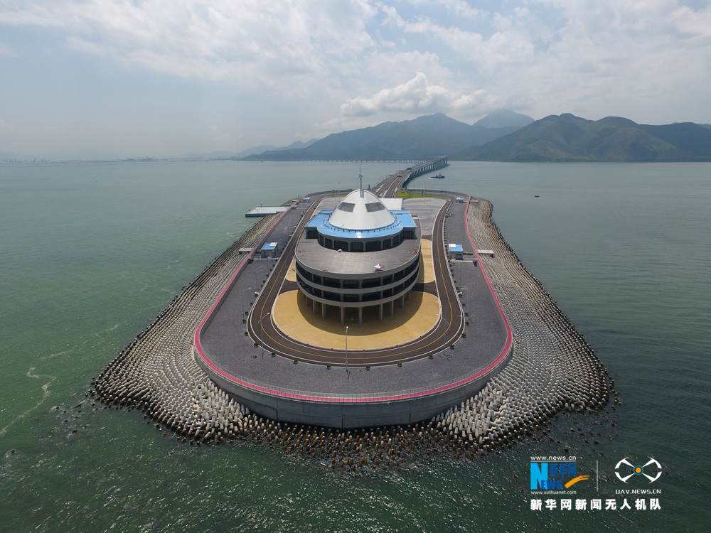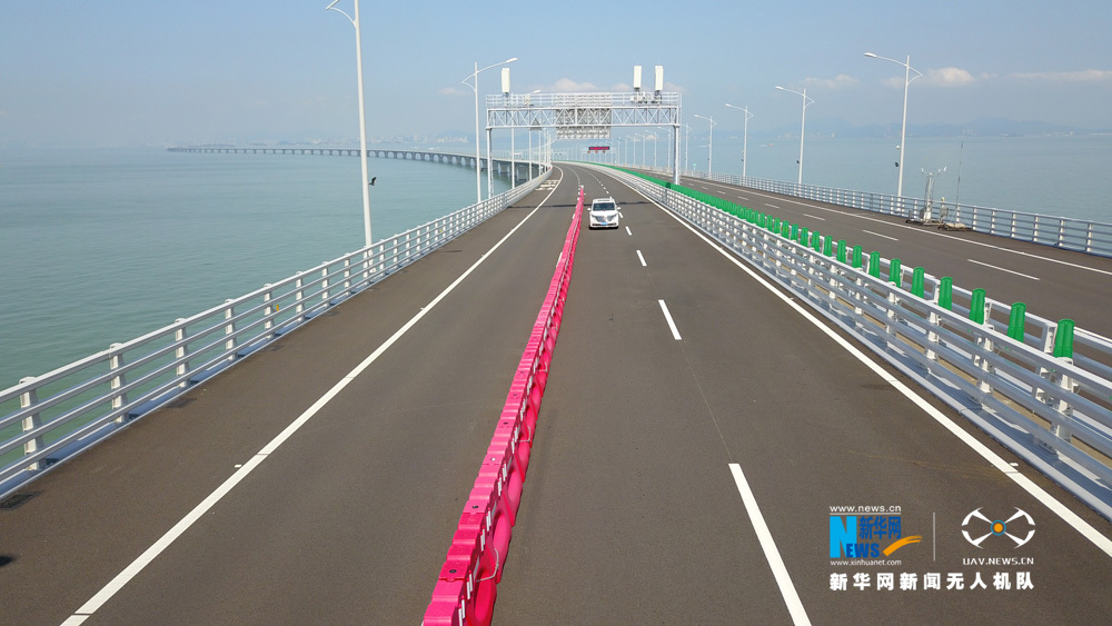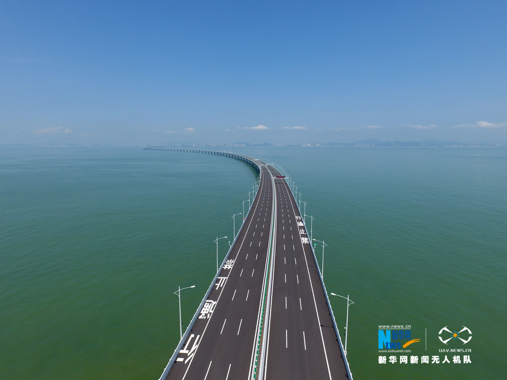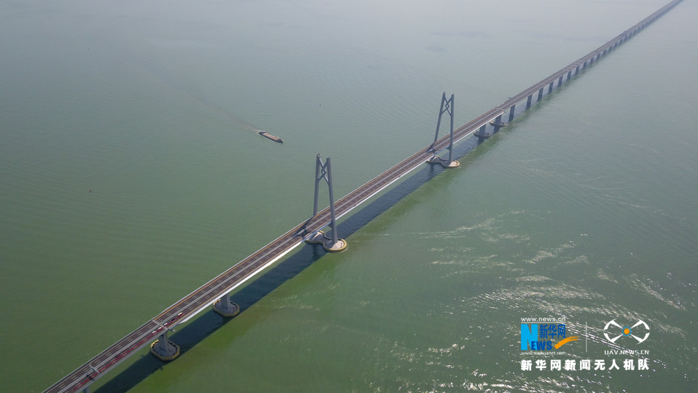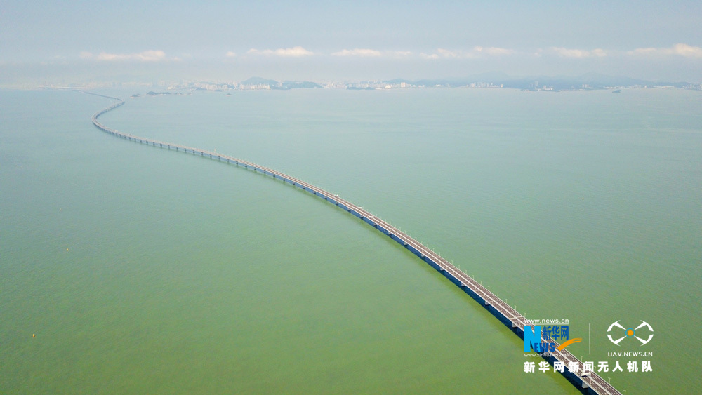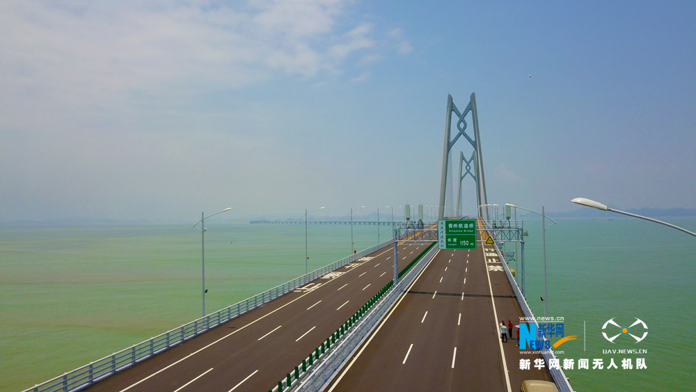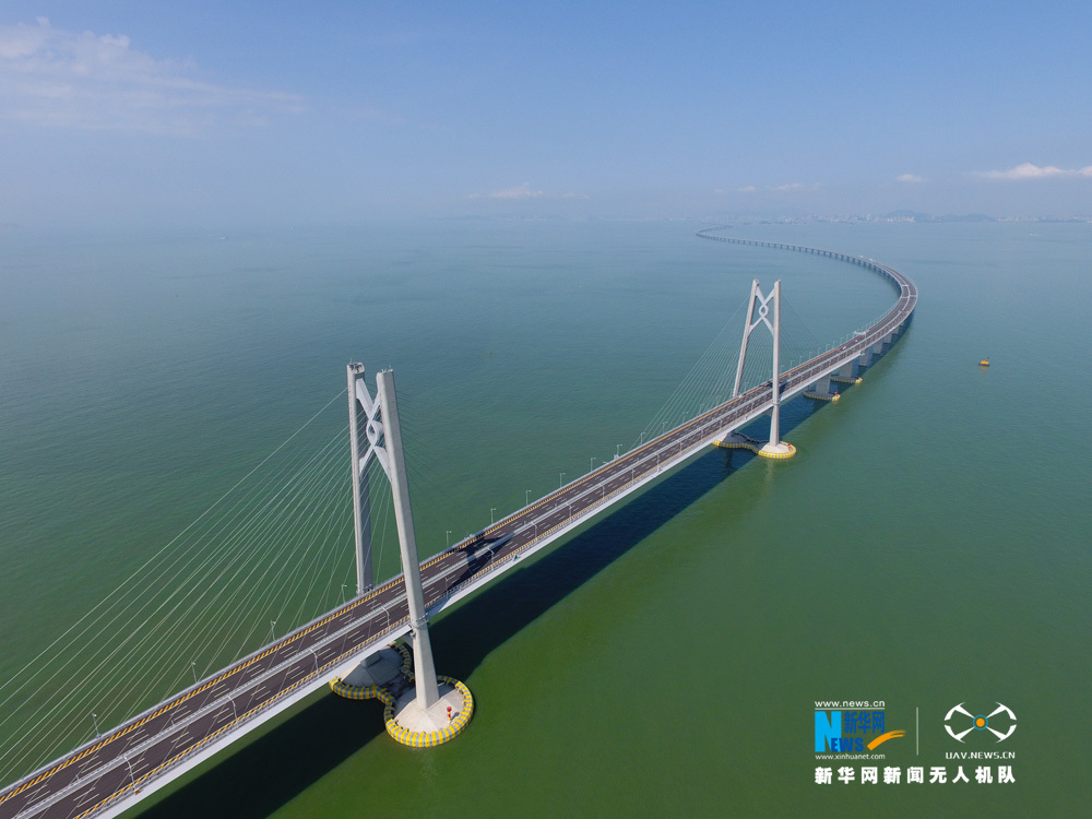 图为新华网无人机队航拍港珠澳大桥。