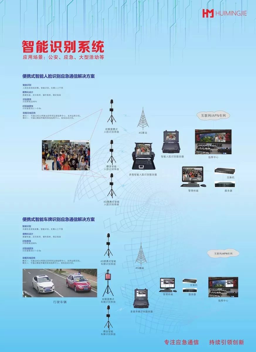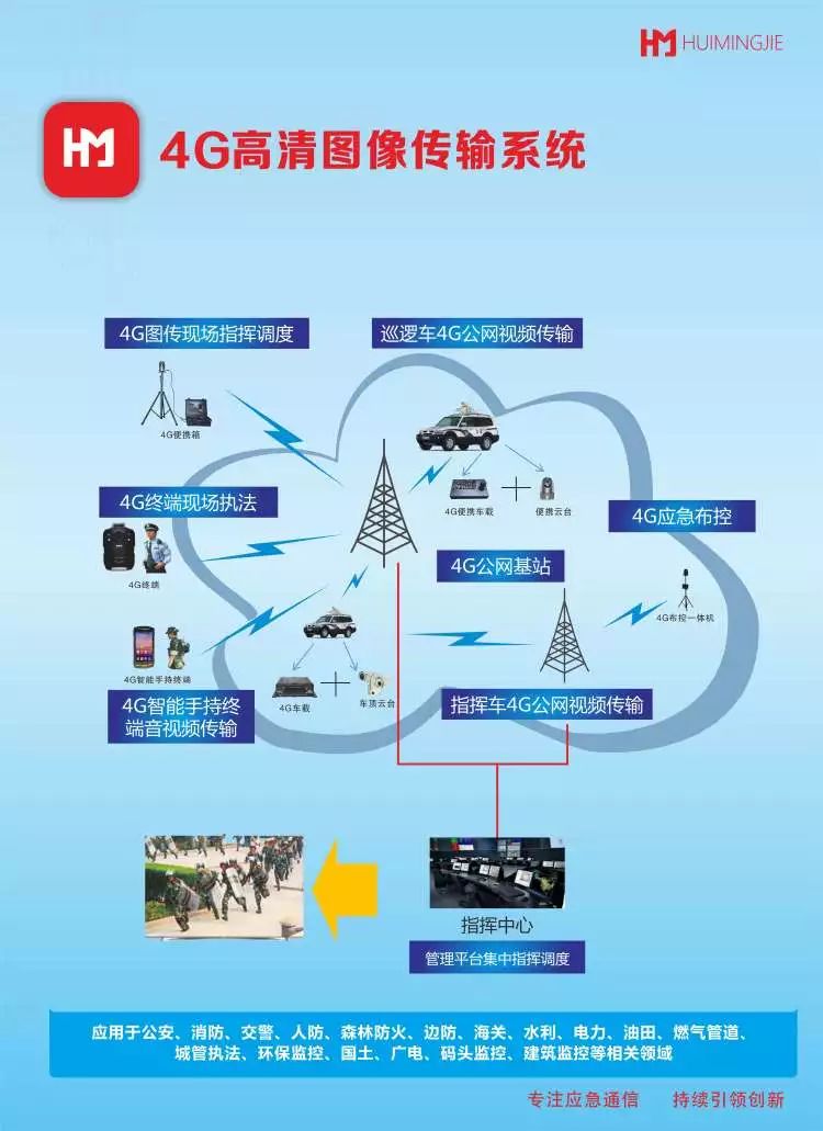 深圳市慧明捷科技有限公司,是一家专业从事应急无线通信设备的研发、生产和销售的高科技公司,长期专注于为用户提供应急无线通信保障的系统解决方案。目前由我公司主导研发、生产的4G专网(无中心同频组网)系统、COFDM高清图像传输系统等已广泛应用于人民防空、公安、部队、海关缉私、城管、森林防火、电视台、环保、安监、应急办等领域。