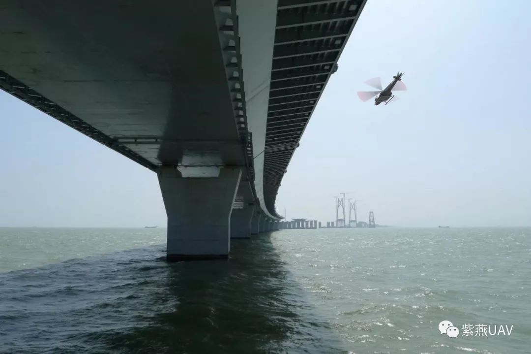 而紫燕无人直升机超视距飞行以及超长航程可以实现从岸上起飞,或从西人工岛向大陆方向飞行,全程22.9km的西段桥面一次完成航拍,充分采集桥面细节和车流数据情况