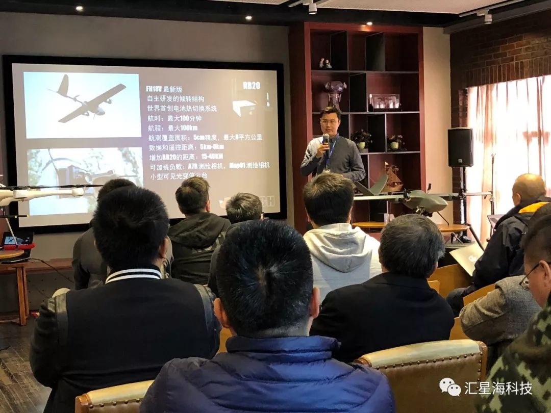 一番学习后,在场嘉宾对盖亚160混动无人机与FH18V产生了浓厚的兴趣,提出了不少疑问,符总和其他销售人员细心解答。
