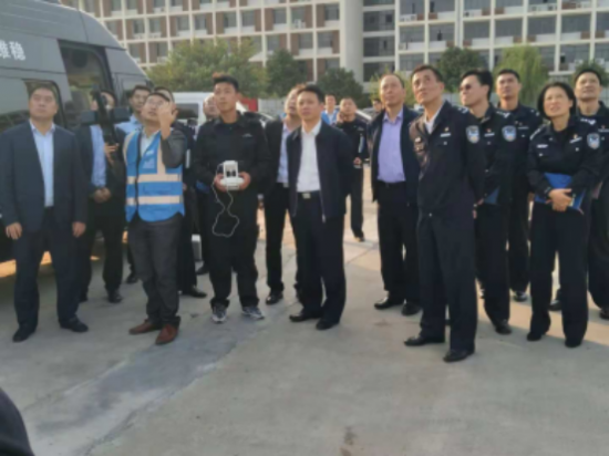 宝山区公安局局长黄辉一行现地观看反无人机操作演示