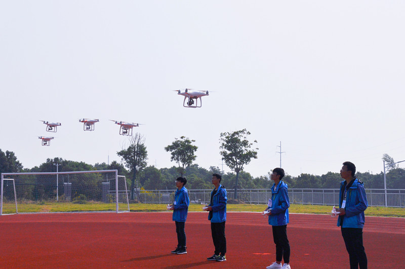 26日,江苏省交通技师学院的运动场上相继亮相了多种无人机飞行表演,吸引了许多师生和摄影爱好者驻足,绿茵场上集结了来自全国各省市的无人机参赛运动员,这是“神通杯”第一届全国无人机花样队列公开赛的开幕式。随后,大学生们精神抖擞现场载歌载舞并表演武术为开幕式助兴。
