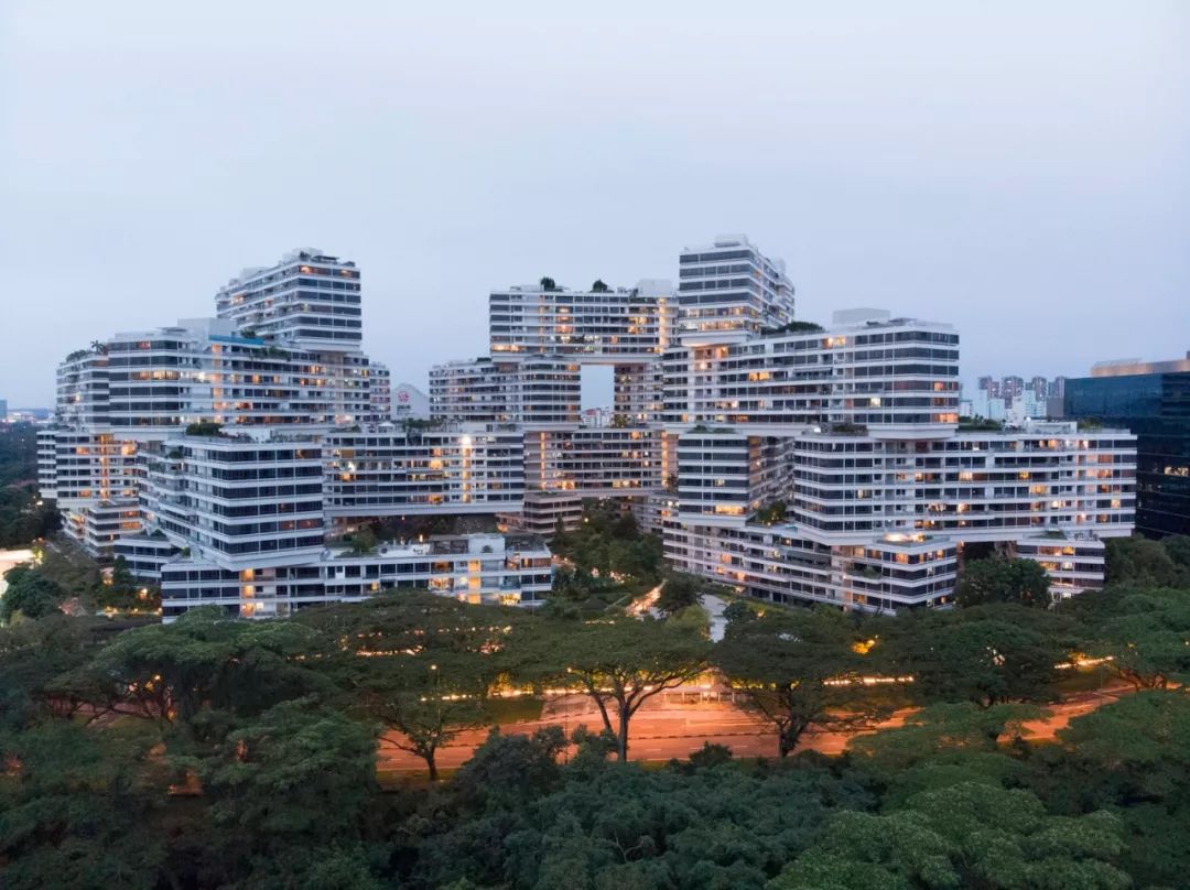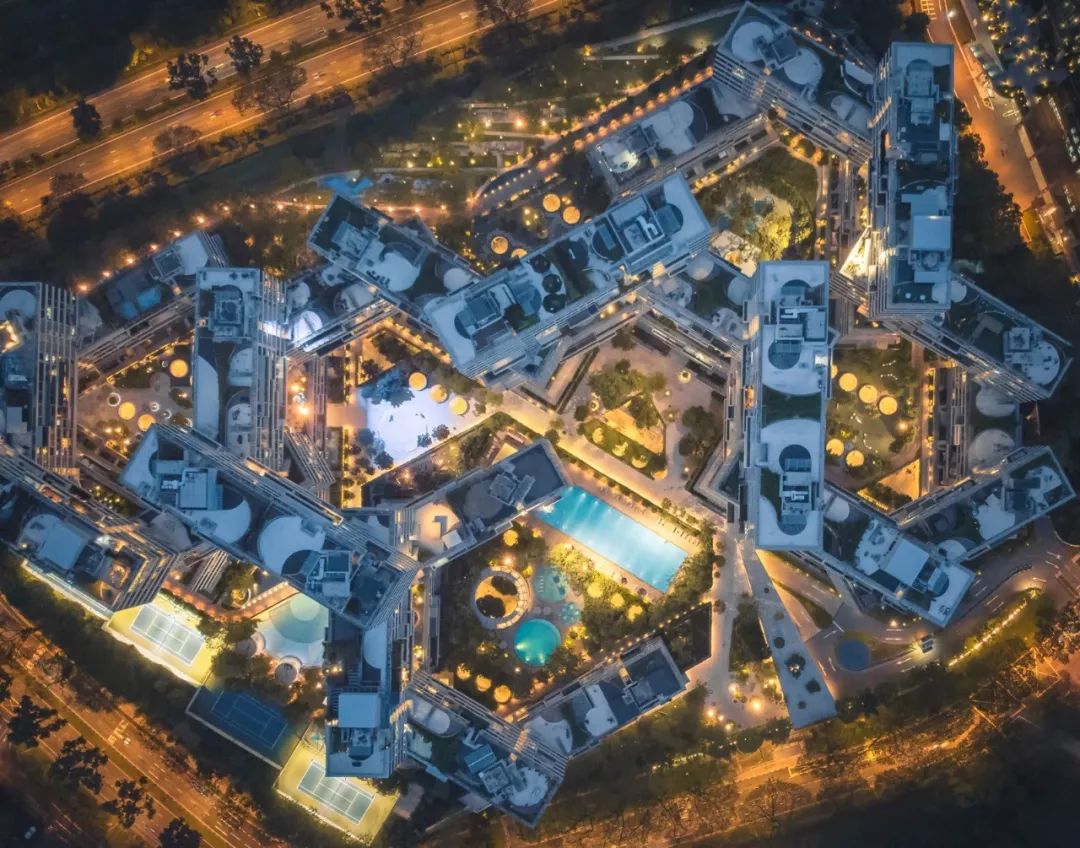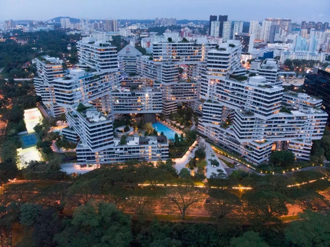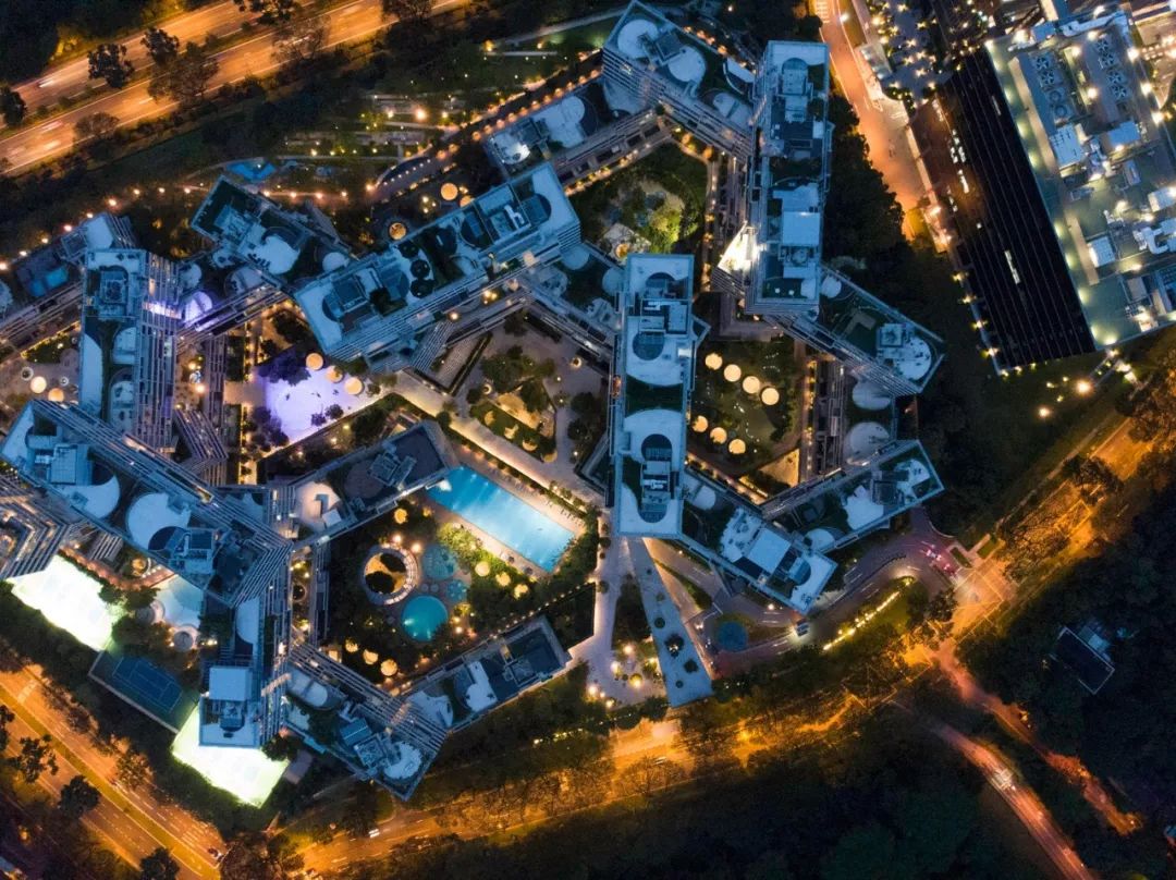物体间的部分遮挡,有利于提升画面的层次感和空间感。过低或过高,都不利于画面层次感的展现。下面一张照片,是我在新加坡用“御” Mavic Air 拍摄的,照片的前景是花瓣状的新加坡艺术与科学博物馆,背景是金融区的摩天大楼。