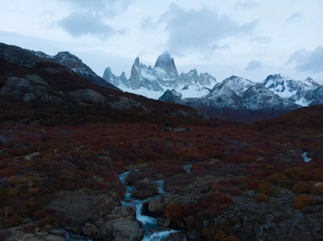 我们需要根据自己想突出表达的地方,飞到相应的高度,完成构图。比如你想着重展现巴塔哥尼亚丰富的秋色,那么可能第一张照片更好。如果是想突出展现雪山和河流相映成辉的场景,那么可能第三张照片更符合要求。