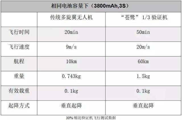 Verified flight performance on the 30% scale model ◆Save more than 85% of energy during cruise ◆Given the same battery capacity 3800mah