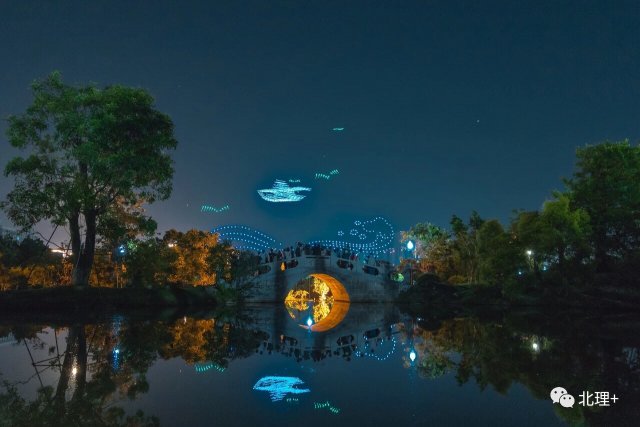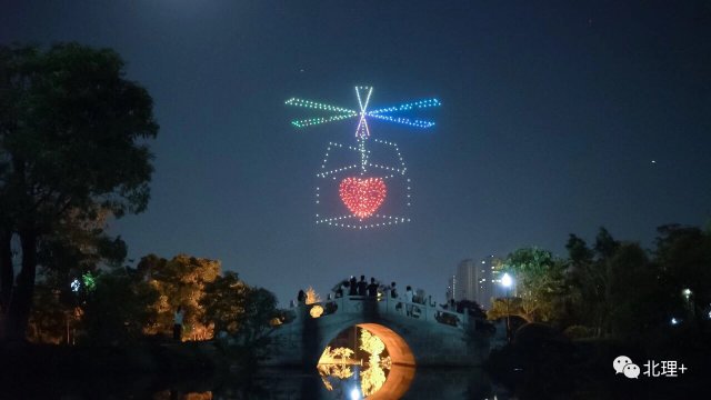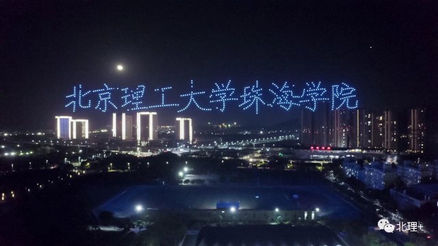 600 架无人机的大规模矩阵以 " 美丽珠海 · 青春北理 " 为主题共表演了两组舞步。600 架无人机组成北京理工大学珠海学院的校徽、校名以及校训,将学院独特的教学理念和氛围以黑科技的方式传递给观众,并且以文字的形式表白学校,表白珠海。无人机灵动变换立体造型,珠海渔女、海豚、宇航员的形象活灵活现展示在观众面前。表演的最后,无人机组成立体画面 " 学士帽礼物 " 进行空投,预祝学子在校园收获知识和学位,将现场的气氛推向高潮。