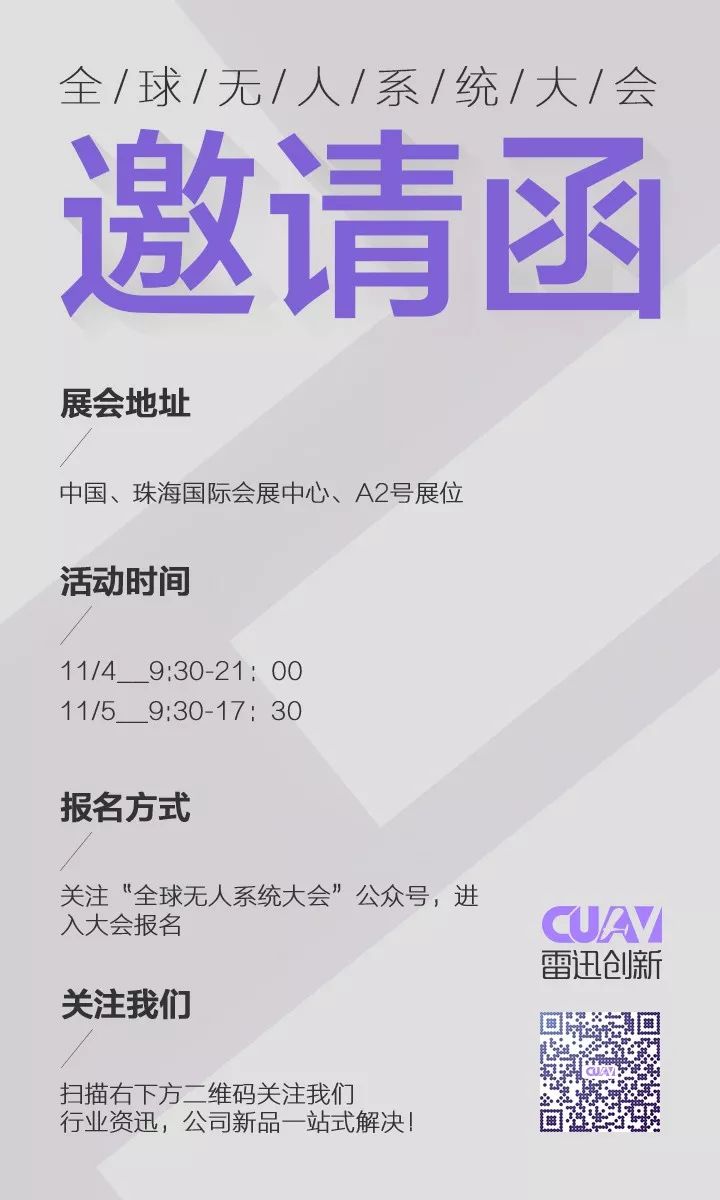 CUAV雷迅创新将出席 珠海·全球无人系统大会,诚意邀请您参加我们的展会!我们将在A2展位恭候您的光临!