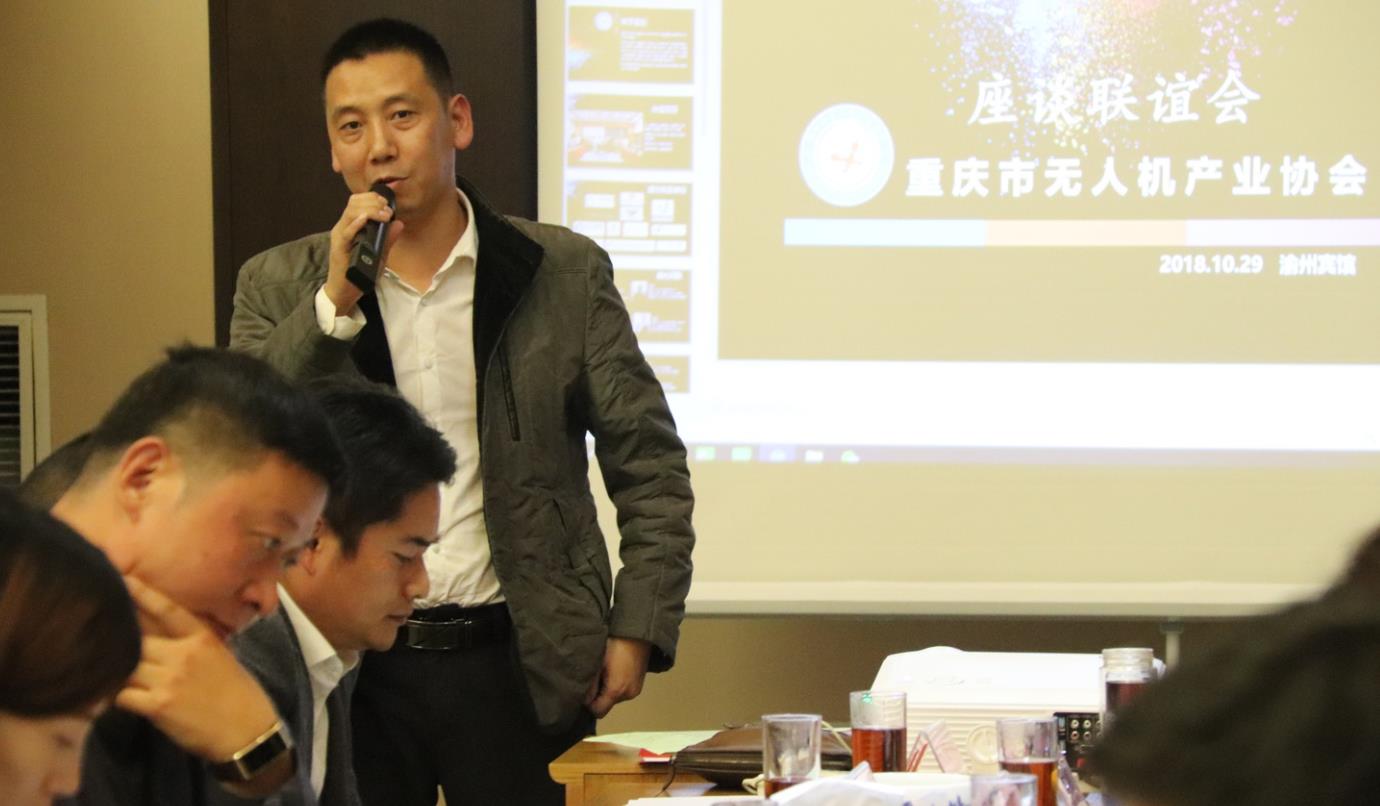 成总裁十分关心协会筹备情况,他指出,重庆是大农村大城市,无人机的应用市场空间巨大,在智慧农业、物流运输、河道巡检、抢险救援、环境监测等应用领域将大显身手。