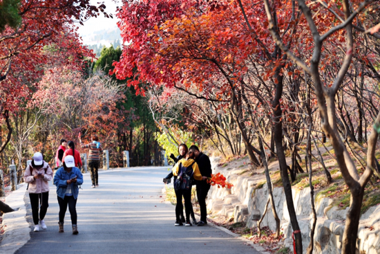 舜网讯10月31日,霜降节气已过,草木枯黄,落叶纷飞,济南已经步入了万物萧瑟的深秋时节。但在南部山区的红叶谷风景区内,此时正是一派“热情似火”的缤纷景象。