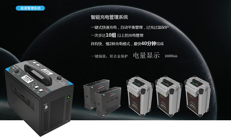 可一键式快速充电,自动平衡管理,具备过充过温保护,一次可充多达10组电池,具有快、慢2种充电模式,最快40分钟完成。