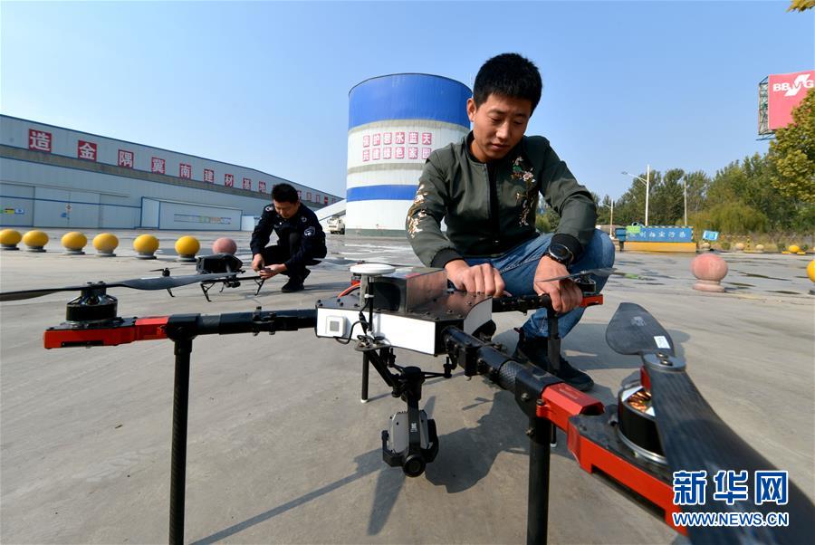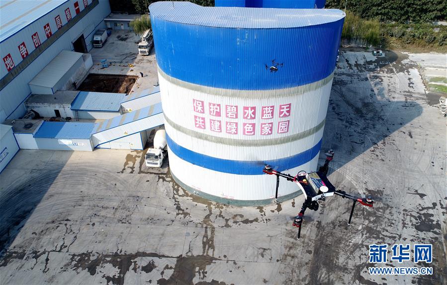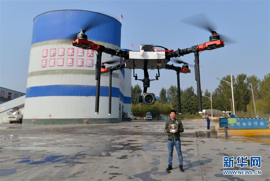 11月1日,无人机在邯郸市魏县一家企业监测空气质量指数(无人机拍摄)。 近日,河北省邯郸市环保局魏县分局使用无人机开展常态化“空中巡查”,全方位监测环境质量,在追踪污染源、隐蔽排污口等方面精准锁定证据,有效延伸环境执法触角。 新华社记者王晓摄