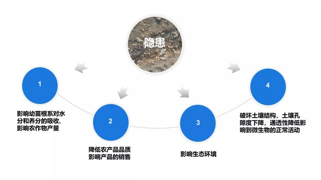 过多残膜的累积将阻碍水分疏导,引起土壤板结,严重的话将影响作物生长。 “成也地膜,败也地膜”,说得就是这个道理。