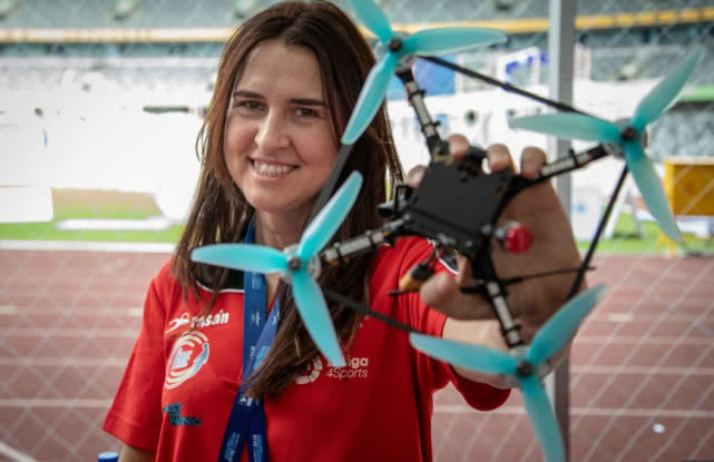 这位44岁的西班牙飞手认为,无人机竞速赛对于听力障碍的人来说是一项伟大的运动,因为它使他们与其他飞手在公平的竞争环境中竞争。她说:“在比赛中我只需要一个助手,在开始或者需要结束的时候,轻拍我的肩膀给我指引。”