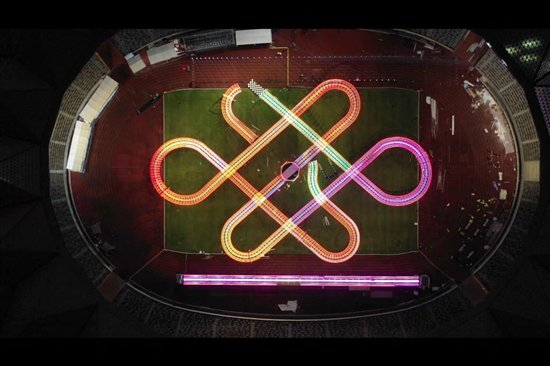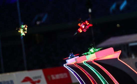 本次无人机世锦赛的 " 中国结 " 赛道,在此前测试赛的基础进行了升级,全钢架结构、3D 立体、超 7000 米的 LED 灯带、灯光跟踪系统、第一视角飞行等高科技元素的汇集,让赛道创下了数项世界第一,也让现场观众大大提升参与度与认知感。