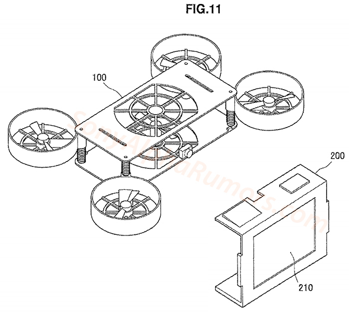 另外从专利文件中看到,索尼这款无人机设计是一种非常「超前」的处理。为了收纳镜头,机身也就只留下了摄像头的位置,其余的地方都留给了收纳机身上的四轴。这样不得不让人好奇,索尼到底把其他元件放在哪里。