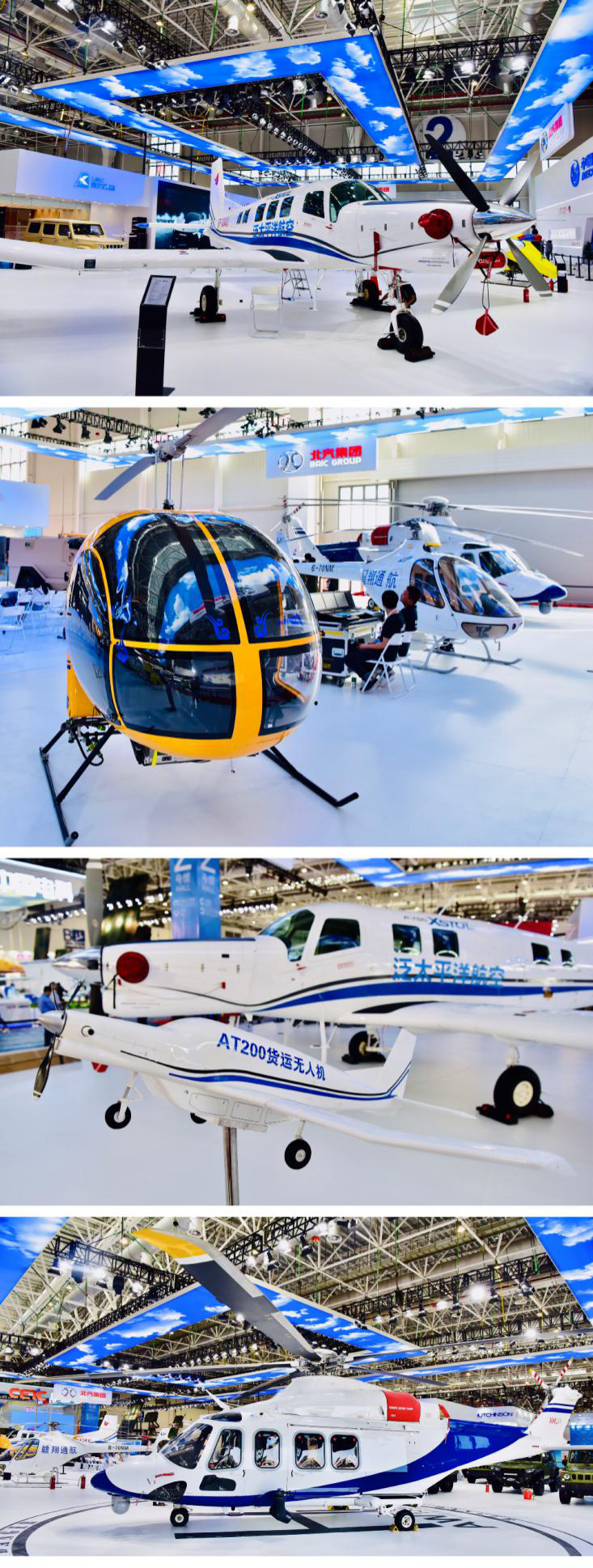 此外,北京通航明星产品P750固定翼飞机、AW系列直升机、天眼工程四旋翼无人机、AT200大型货运无人机、G2轻型直升机、JH-2直升机等悉数亮相,共同组成了北汽集团的“空中铁军”。