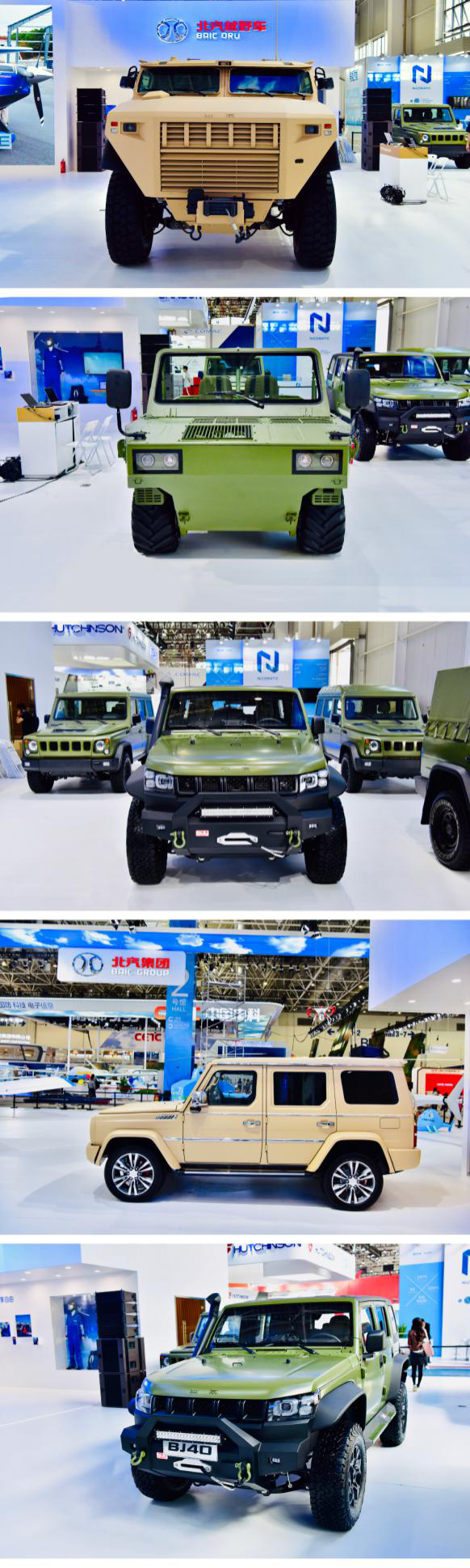 此次展出,由北汽集团旗下北京汽车研究总院研发的自主品牌越野车军用及民用车型全线参与,在室内和室外展区分别开展静态和动态展示,形成北汽集团汽车与通航两翼并举、军用与民用深度融合的立体品牌形象。