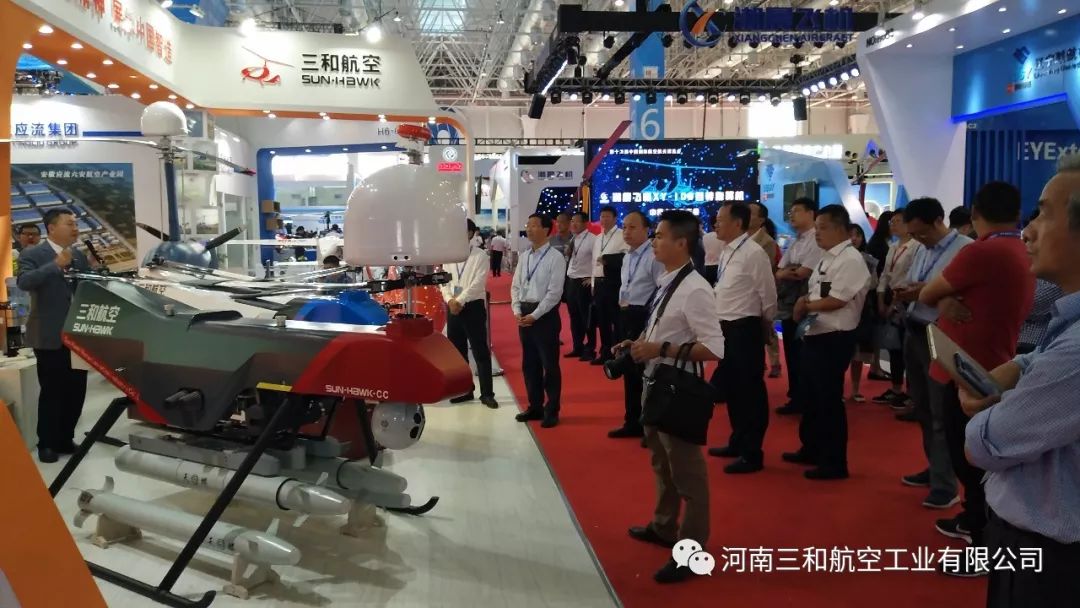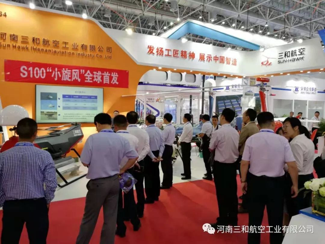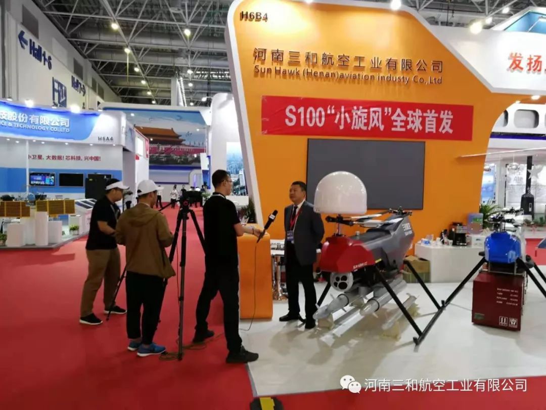 2018年11月6日11点整,河南三和航空工业有限公司在珠海航展6号馆H6B4展位举行了无人直升机S100“小旋风”的全球首发仪式,作为本届航展首家发布新品的企业,以纵列式双旋翼结构打破了常规无人机的设计理念,得到了业内人士的高度认可和赞誉。由郑州市人民政府副市长、党组成员、中国(河南)自由贸易试验区郑州片区管委会主任万正峰和郑州市上街区区长耿勇军参加了S100“小旋风”的首发揭幕仪式。