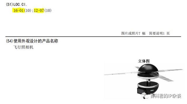 好在中国的审查员是比较理智的,同样是飞行照相机,这篇就被同时分配了16-01和12-07两个洛迦诺分类,后一个是无人机相关的分类。