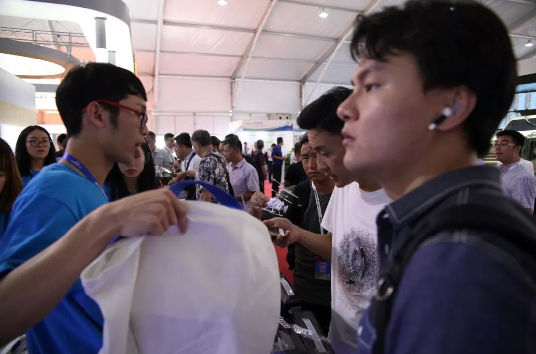 而在静态展区,北京中航智的展位无疑成为今天最为火爆的区域,航空爱好者蜂拥而至,争相一睹TD10、T333、TD450等重量级无人机。
