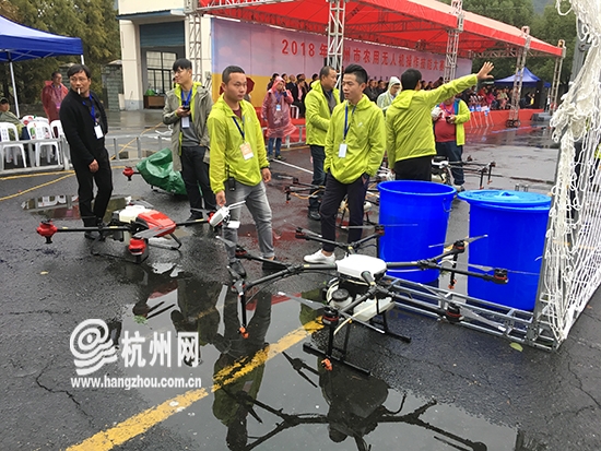杭州网讯 无人机在农业应用领域已经是“进入寻常百姓家”,它们代表着更加智慧节能和高效的新型农业。昨天上午(11月7日),在富阳区举办的杭州市农用无人机操作技能大赛,来自各区县十多支参赛队伍为大伙展示了一场无人机操作秀。