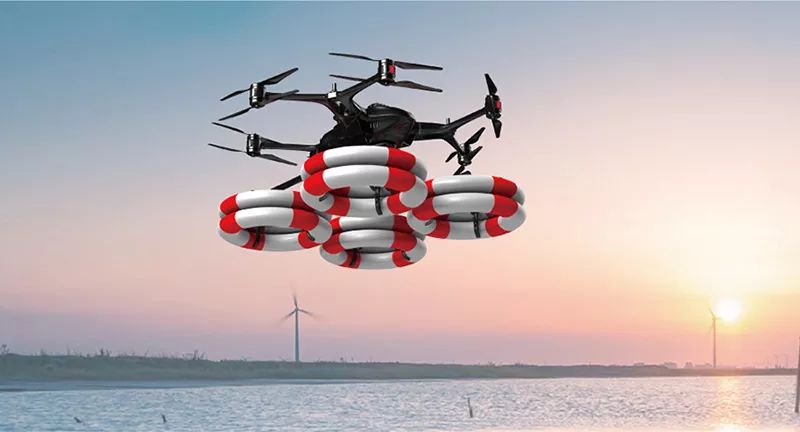 哈瓦救援无人机救生圈系统:单驾次搭载8个救生圈,可单个依依投放。并同时搭载36倍摄像系统与喊话系统,实现精准抛投及抛投提醒。