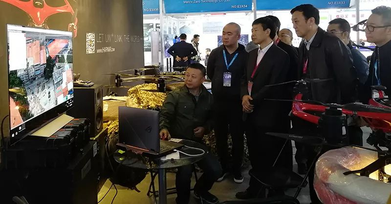 哈瓦特种装备无人机以行业前沿技术产品,警用专业解决方案受到中国安防协会秘书长张忠孝(上图左三)等业界专家肯定,热情周到的服务也尽显团队专业,备受展台观众好评。特别是哈瓦战斧H-16察打一体无人机和整体解决方案独占鳌头,闪耀全场。
