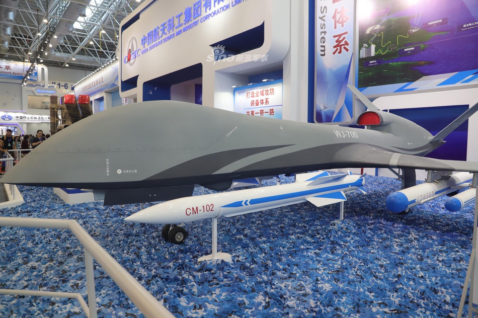 WJ700高空高速察打一体无人机系统采用轮式自主起降,可装载多种任务设备及机载武器。能够执行对面(海/地)侦察,监视,预警任务,执行远程反舰反辐射和防区外对地精确打击任务,执行电子侦察和干扰任务。最大起飞重量3500KG,最大航时20小时。
