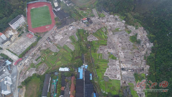 图为运用无人机拍摄违法建筑群拆除后的效果图。