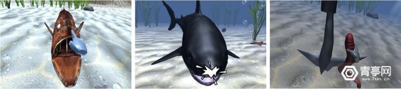 在主动VR触觉反馈的演示湖面中,会出现一只好奇的VR鲨鱼,它在感受到体验者靠近的时候会直直地游过去。体验者在头显中看到它碰到自己的同时,搭载了与鲨鱼鼻部相似的表面会主动触碰体验者,视觉与触觉的自然结合,放大了交互的整体沉浸感。