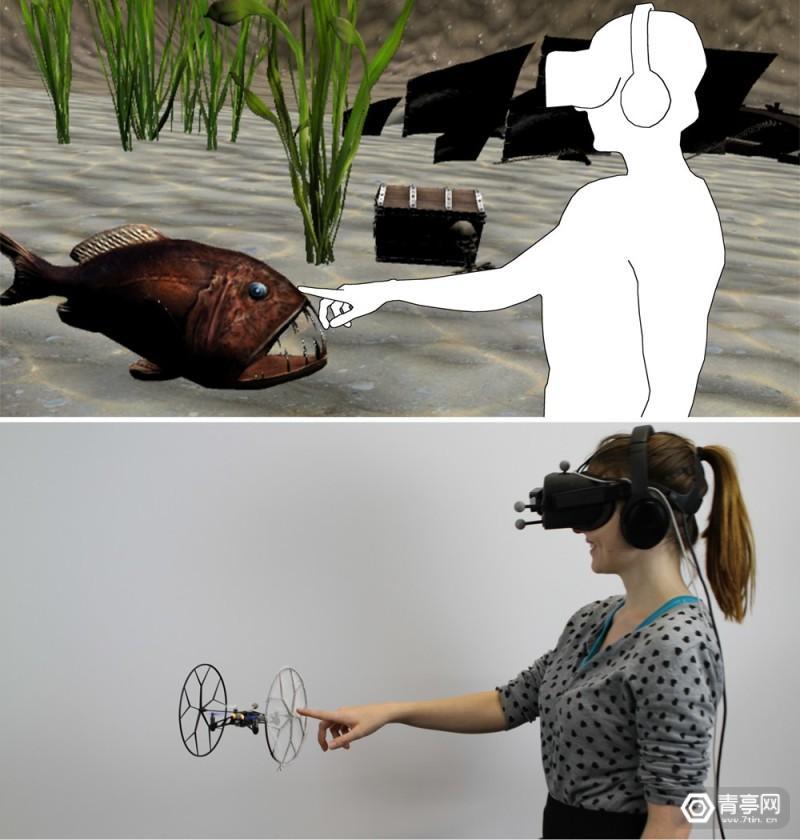 据悉,这组科研人员希望用该体感系统提供三种触觉反馈:被动、主动和定位触觉媒介。为展示这三种触觉反馈,他们研发了一款多功能深海VR内容。在沉浸感非常强的昏暗水下环境中,用户伸出手就能感受到无人机提供的被动触觉反馈。