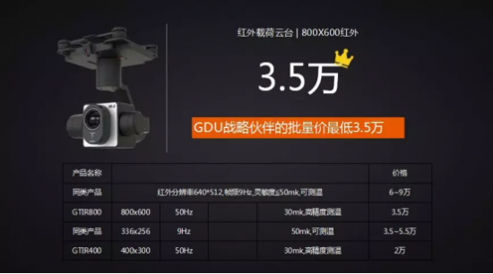 普宙这款800*600高分辨率红外云台,监测画面清晰,图像质量高,在行业无人机红外载荷里首屈一指,价格更有绝对优势,目前市场上同类红外载荷产品每台价格6~9万之间,普宙在此声明,将用超高性价比的产品让利合作伙伴,凡签约红外产品订单达100台即可享受每台3.5万元的特惠价,此政策再次破无人机红外挂载价格的新纪录!