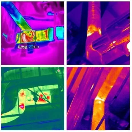 在大量使用石油管道的情况下,容易出现很多肉眼无法检测到的故障,如:列管破裂、列管堵塞、隔板腐蚀等情况,利用红外云台无人机可对管道温度进行检测,根据热成像图显示的温度异常情况,迅速发现破裂损坏的地方,及时采取有效措施,避免了仅依靠人工“听-看-闻-摸”这种不方便又不安全的检测方式。