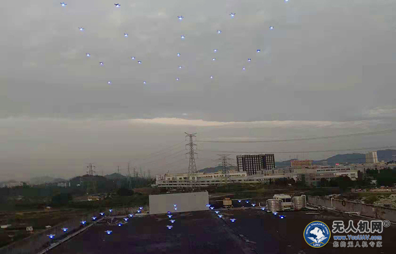 大漠大智控100架无人机编队飞行表演