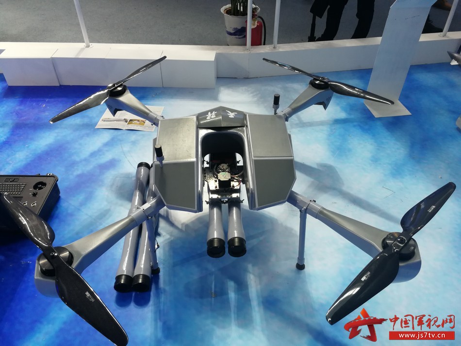 在第12届中国航空航天博览会的最后一日,中国军视网的记者在众多展品中“挖”出了一件“珍宝”。这是一架旋翼无人机,不仔细看,你可能会认它只是众多展品中的一架普通无人机,它的名字叫做“天羿”小型武器无人机。想知道它具体有多猛吗?跟着记者去看看吧。图为“天羿”小型武器无人机。