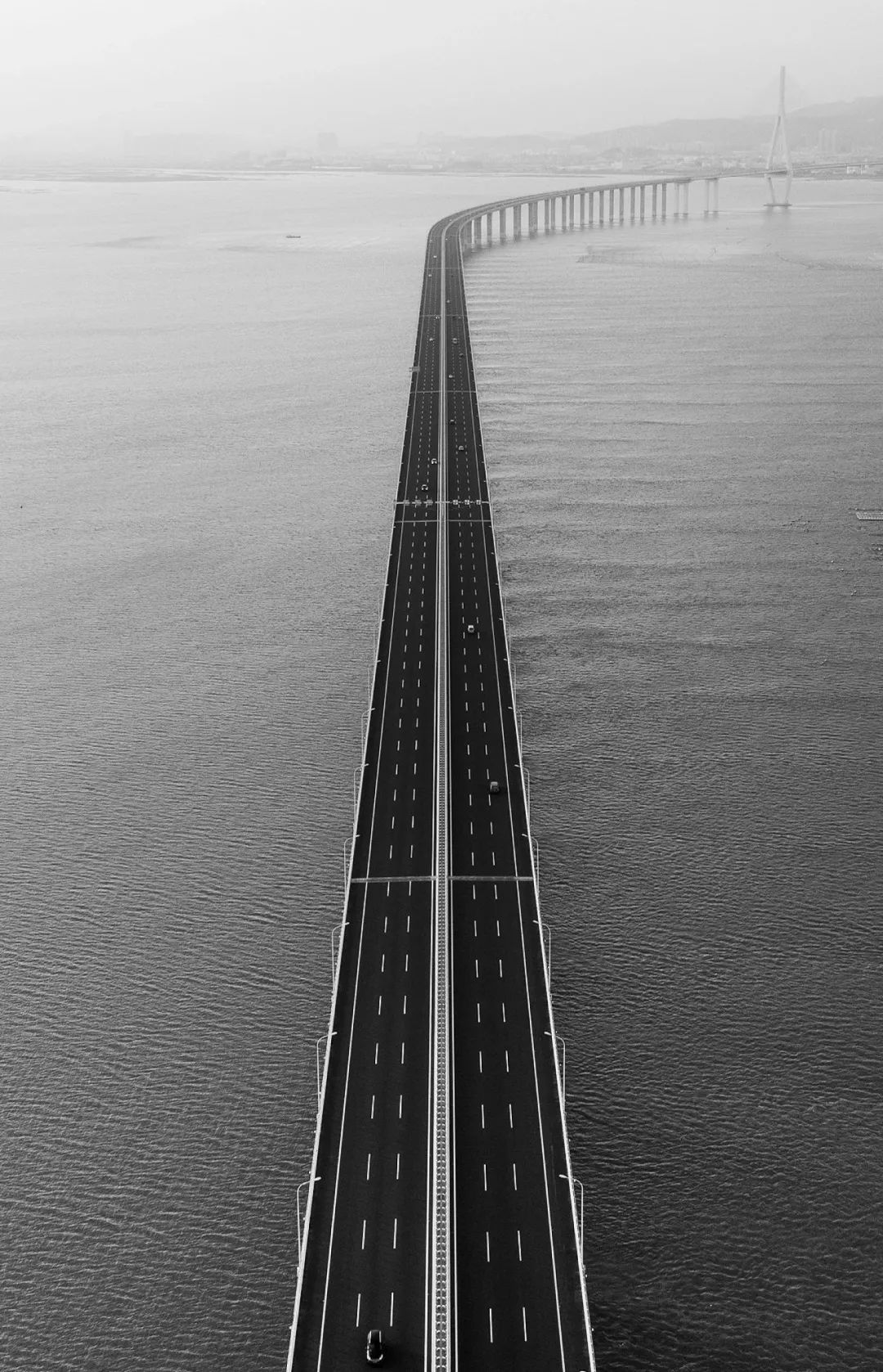 桥梁连接着海洋和陆地,延绵在一望无际的海面上,每天来往的车龙行驶在笔直的柏油路上,通向远方未知的风景。高耸的拉索塔像是力挽狂澜的巨人,承托起这一座座海上庞然大物。