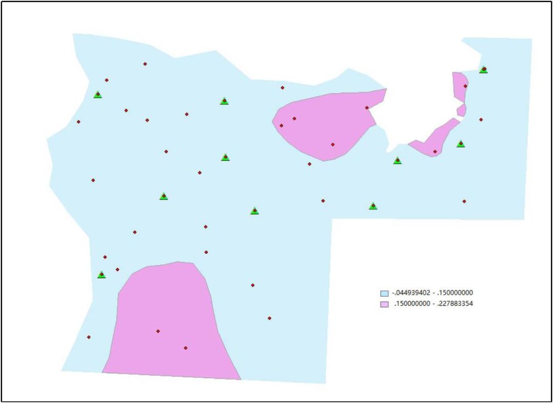 利用等值线方式对高程误差区域进行分析,《高程误差分布的区域分析图》,蓝色区域为高程误差小于0.15cm,红色区域高程误差0.15-0.228cm。基本反应控制点对高程误差的控制作用。