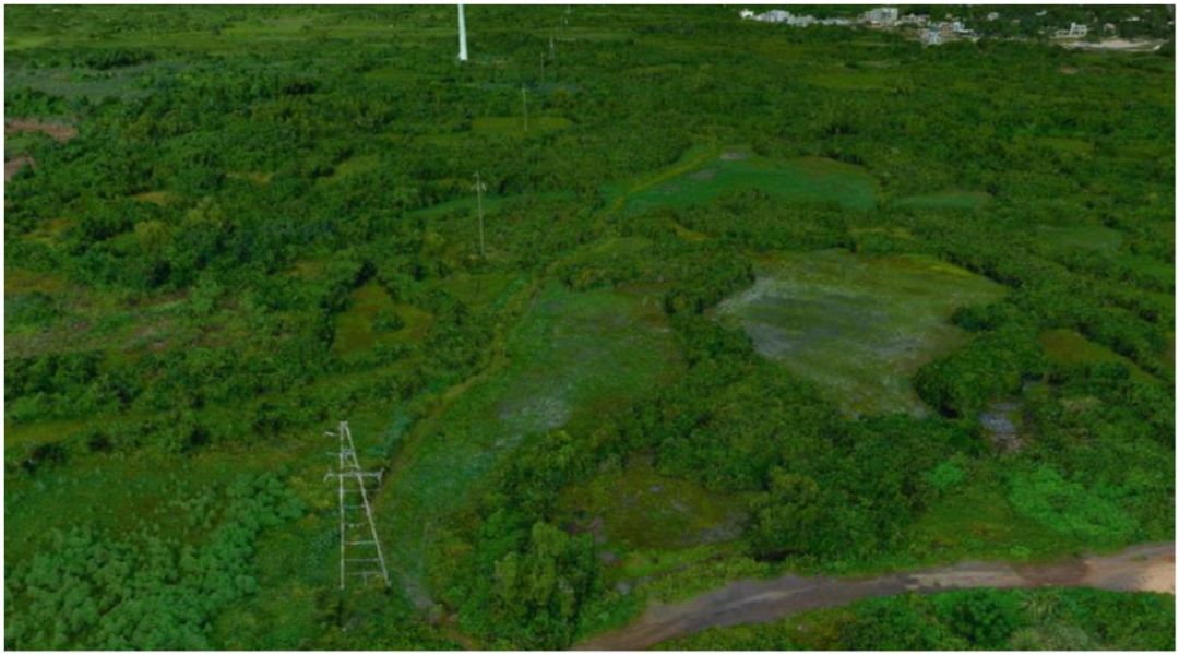 本次测试区域面积约7.5平方公里,测试区域内有海岸、滩涂、林地、农田、村庄及路网区域,地势基本平整,没有明显山丘,高差在35cm以内。