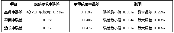 成果精度符合规范要求,满足 1:500地籍测图平面精度要求,满足 1:500地形测图高程精度要求。