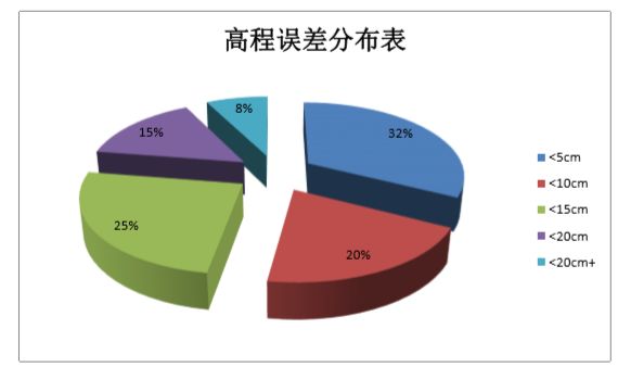 检测出,高程误差绝对值,最小值 0.007m,最大误差 0.229m,中误差 0.119m。0.15m 以下高程误差占检测数据的 77%。