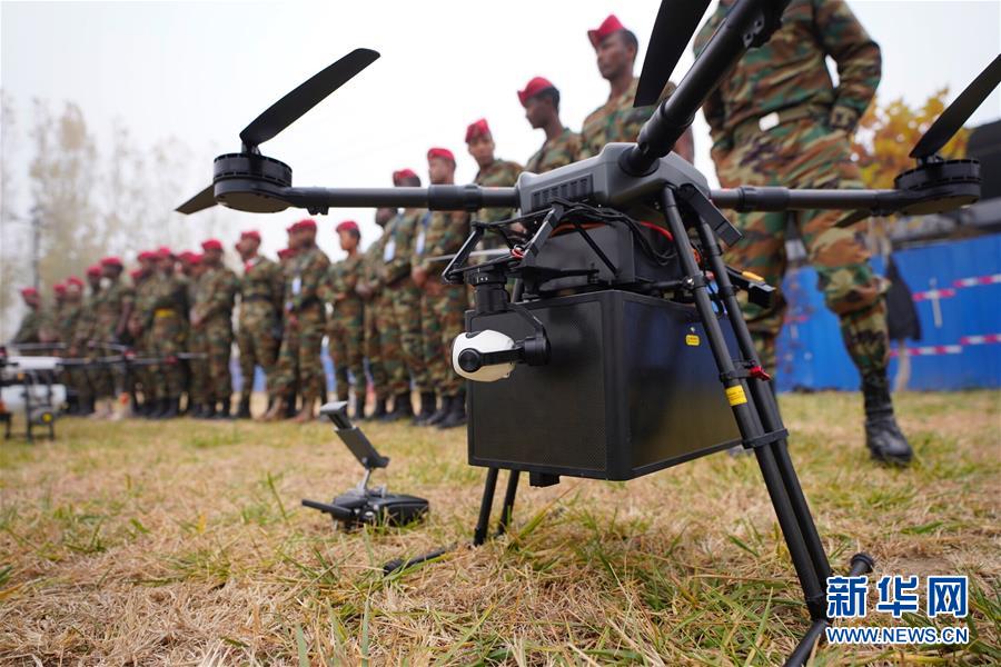 11月14日,来自埃塞俄比亚的警察在北京房山未来智能飞行学院学习无人机驾驶技能。 新华社记者 邢广利 摄