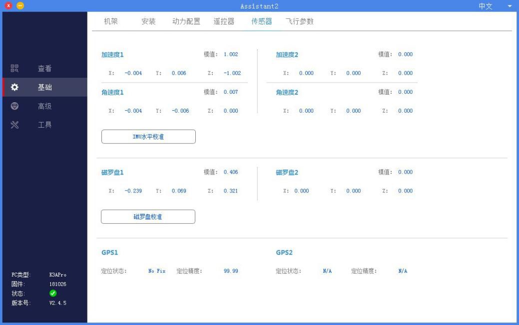 ①将飞机水平放置即可校准IMU
