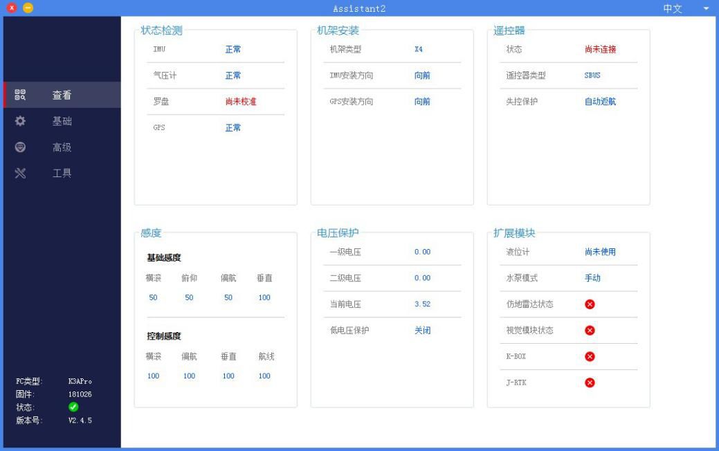 最新版本的K3A调参软件调试飞控教程如下: