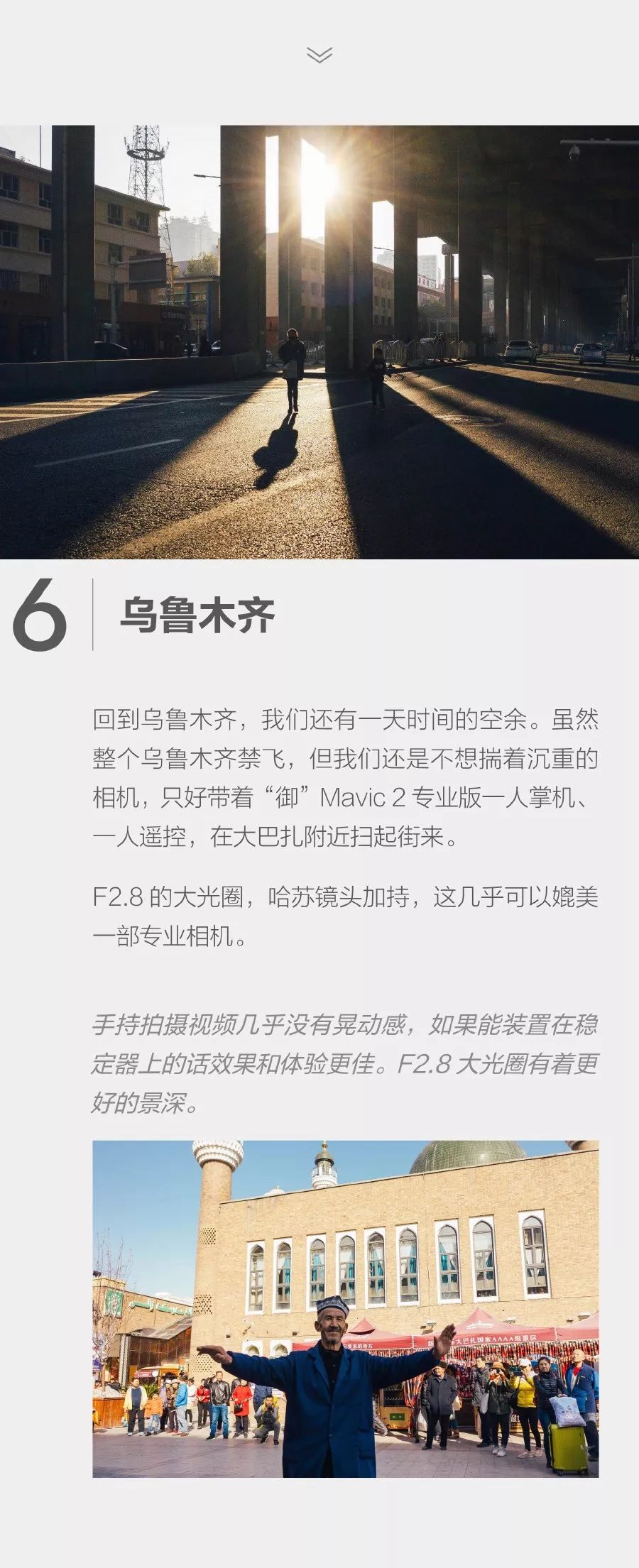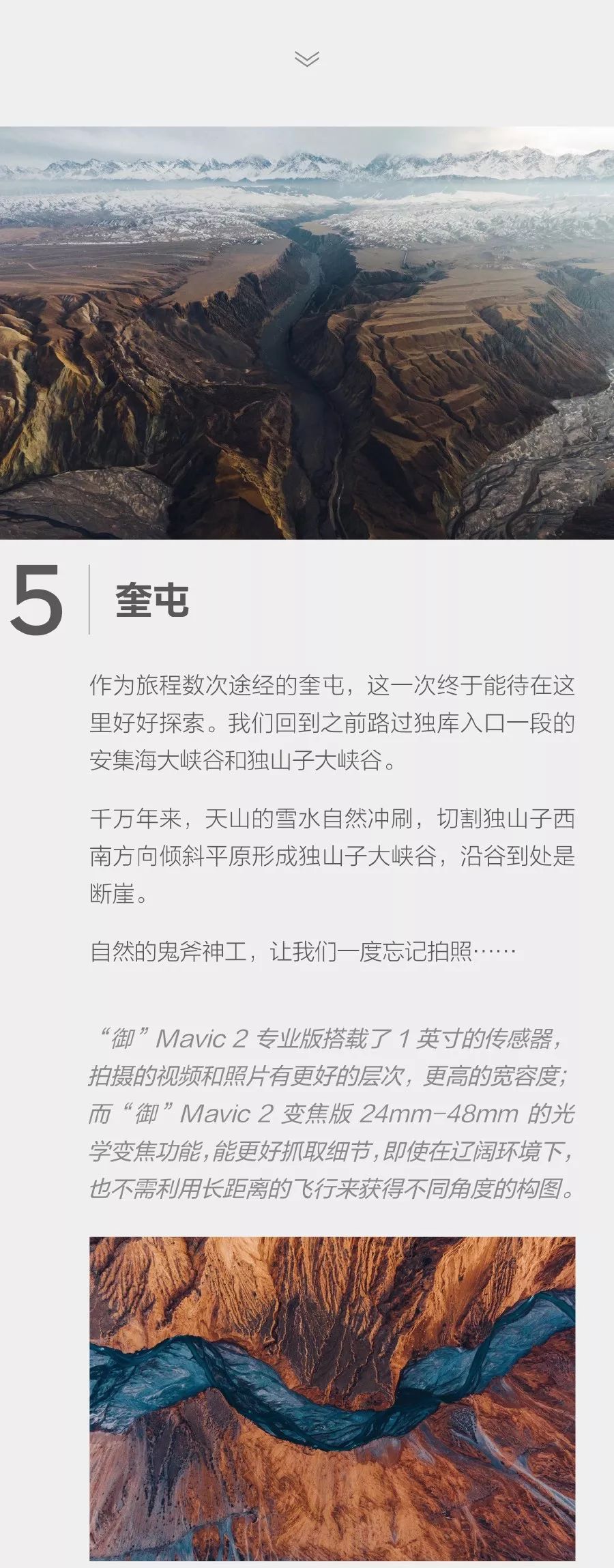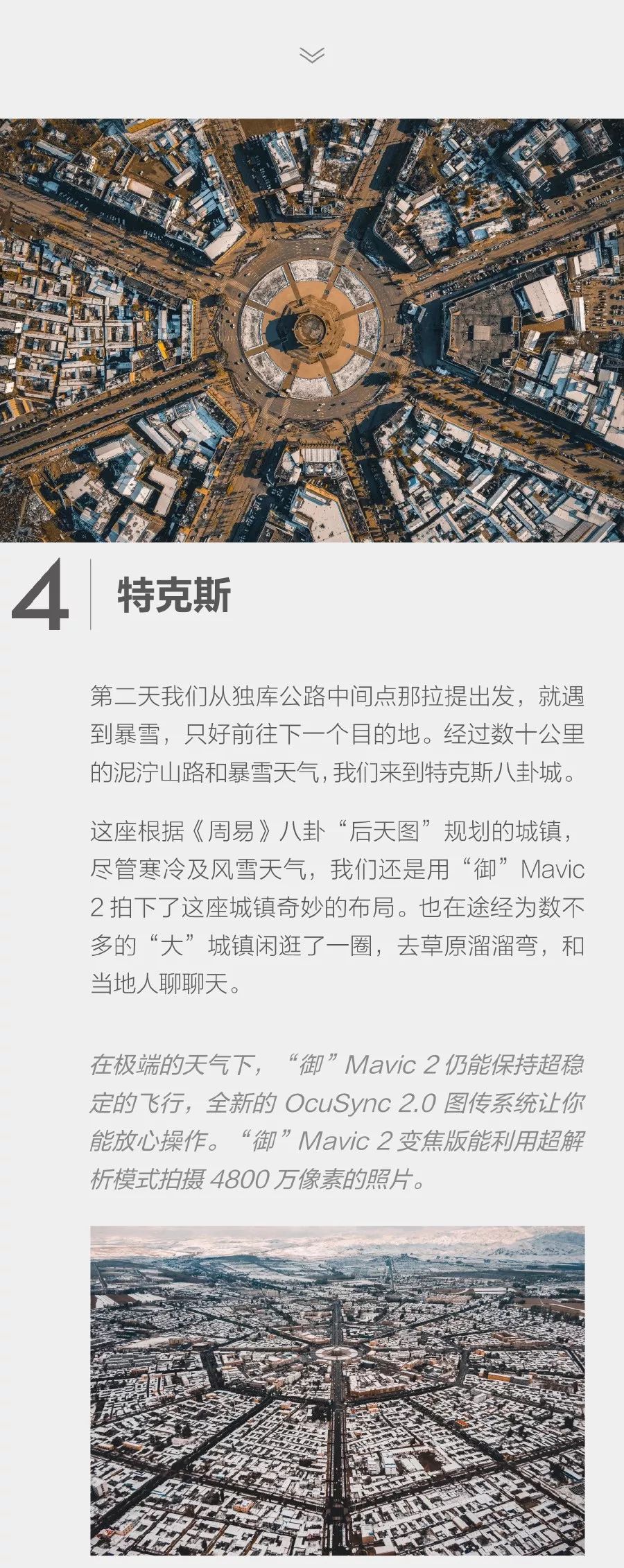 在这 4000 公里的旅程中,完全不依靠其他相机和摄影设备的支持,靠着手持无人机加航拍的方式,依然创造出令人震撼的景色大片。