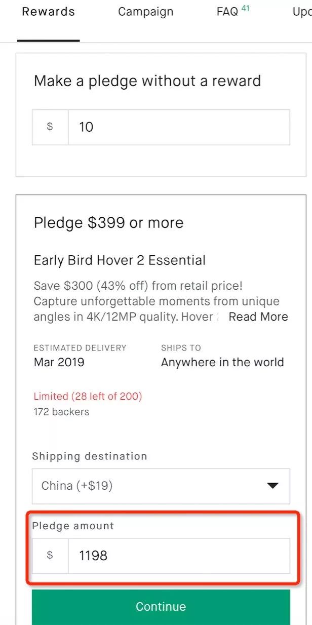 3.您预订 Hover 2 的backer number